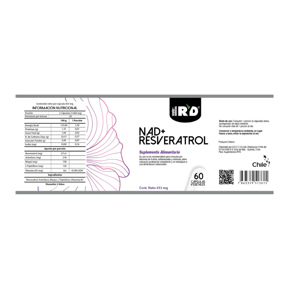 NAD+ Resveratrol 60 cápsulas RYD